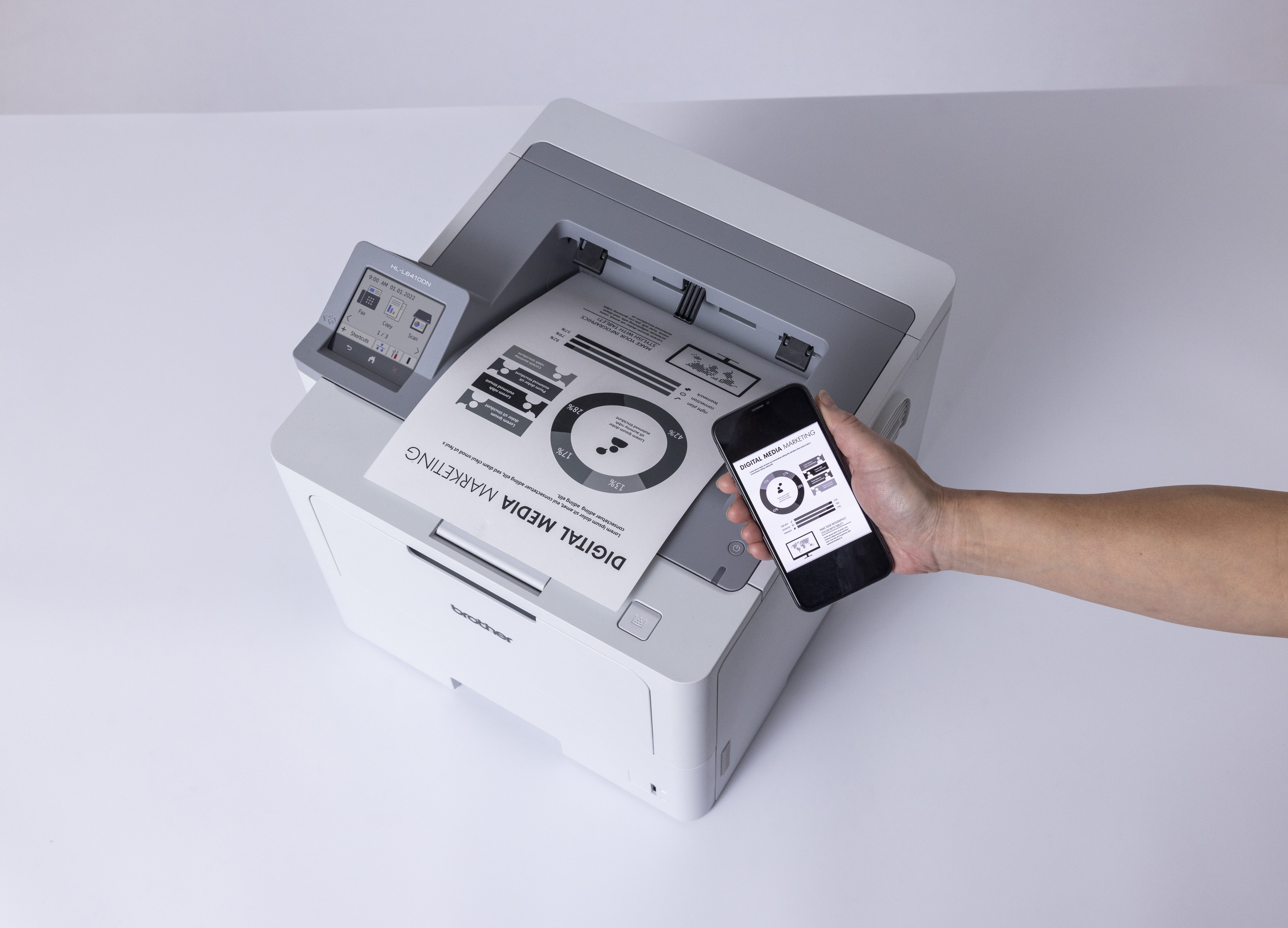 De Brother HL-L6415DN biedt supersnel printen en optimale betrouwbaarheid, zodat u altijd kunt rekenen op documenten van topkwaliteit wanneer dit nodig is. Met de meegeleverde tonercartridge van superhoge capaciteit kunt u langer printen, terwijl u aanzienlijk bespaart op de printkosten. Dankzij de diverse verbindingsopties, het solide ontwerp en opties voor het uitbreiden van de papiercapaciteit is dit de ideale printer voor het verwerken van al uw zakelijke printopdrachten.
